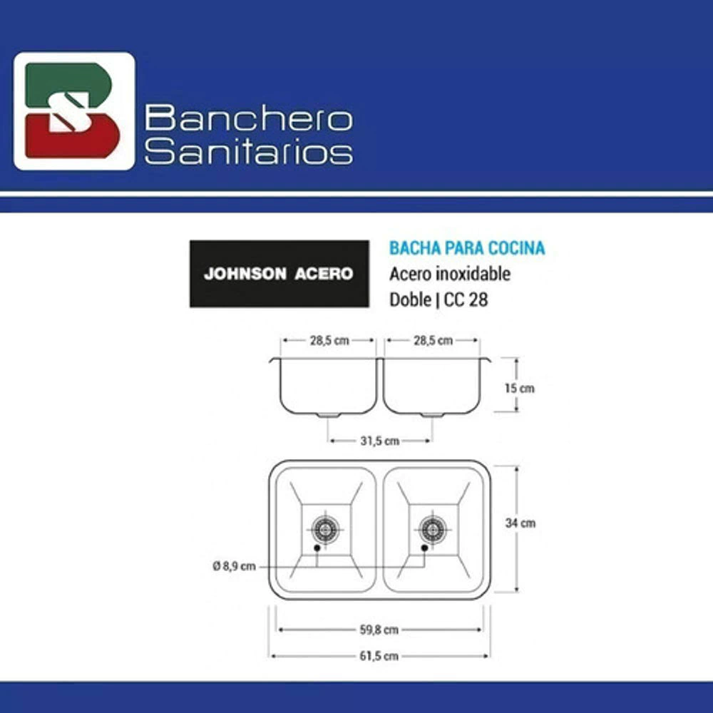 Bacha Johnson Acero De Cocina Doble