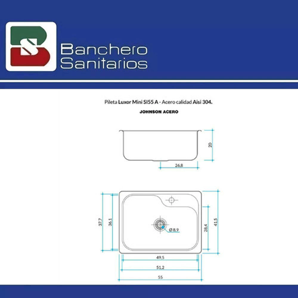 Bacha Cocina Johnson Luxor Mini Si55Ad 55 X 41.5 X 20 Pulida Dosificador (Cod:P30Luxorsi55Ad) (mod: SI55AD)
