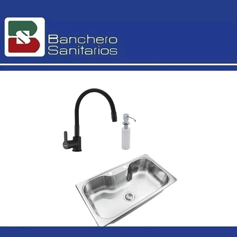 Bacha Cocina Johnson Luxor Si71Ad 71 X 48.2 X 21 Pulida Dosificador + Dosificador Johnson Std + Grifería Monocomando Piazza Emblem 10017Ne Cocina Pico Flexible Terminación Negro
