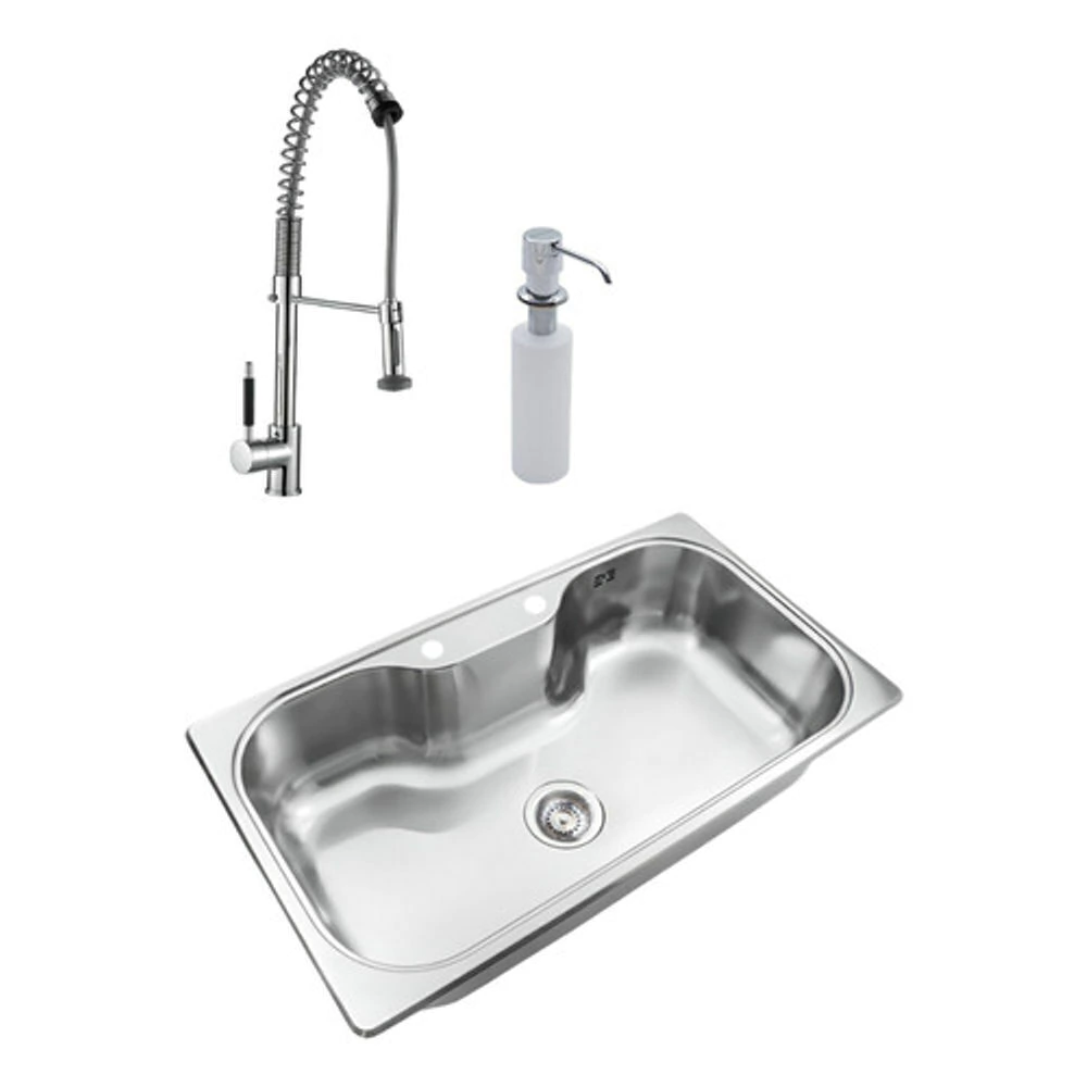 Bacha Cocina Johnson Luxor Si71Ad 71 X 48.2 X 21 Pulida Dosificador + Dosificador Johnson Std + Grifería Piazza Gourmet 10308 Mes. C/Rociador Flex Cr