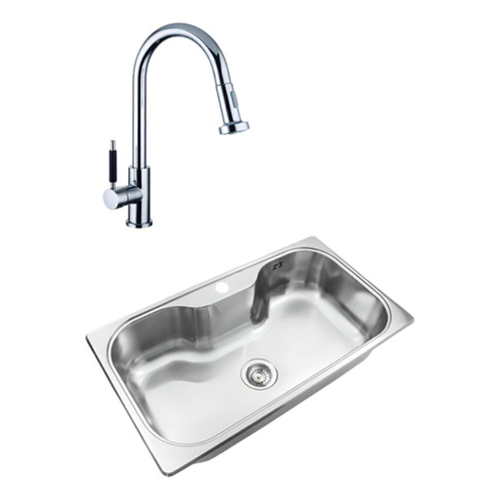 Bacha Cocina Johnson Luxor Si85A 85.5 X 48 X 21 Pulida + Grifería Piazza Gourmet 10300 Mesada C/Roc Extraible Cromo