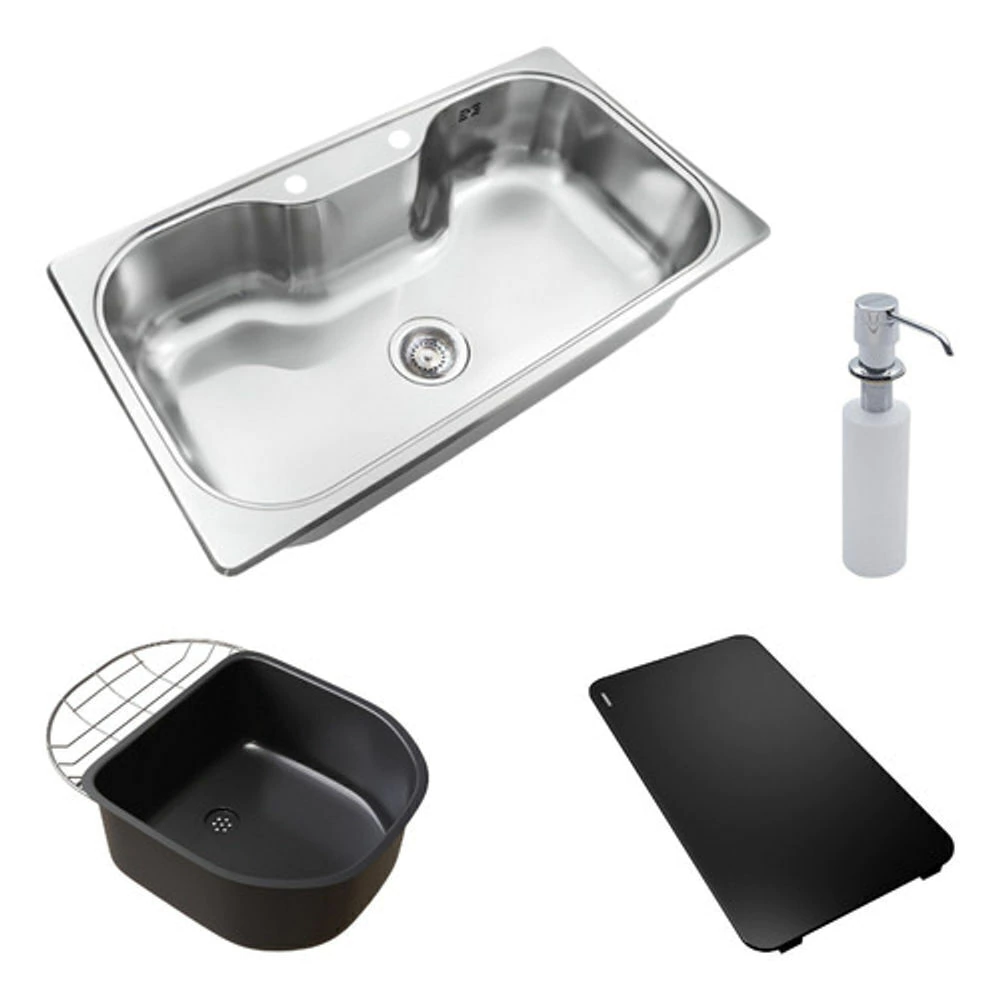 Bacha Cocina Johnson Luxor Si85Ad +Dosif, Pileta Accesoria y Tabla de Picar Negra