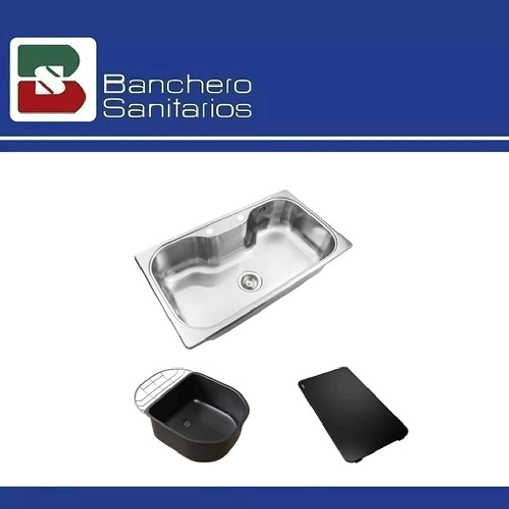Bacha Cocina Johnson Luxor Si85Ad + Pileta Accesoria y Tabla de Picar Negra