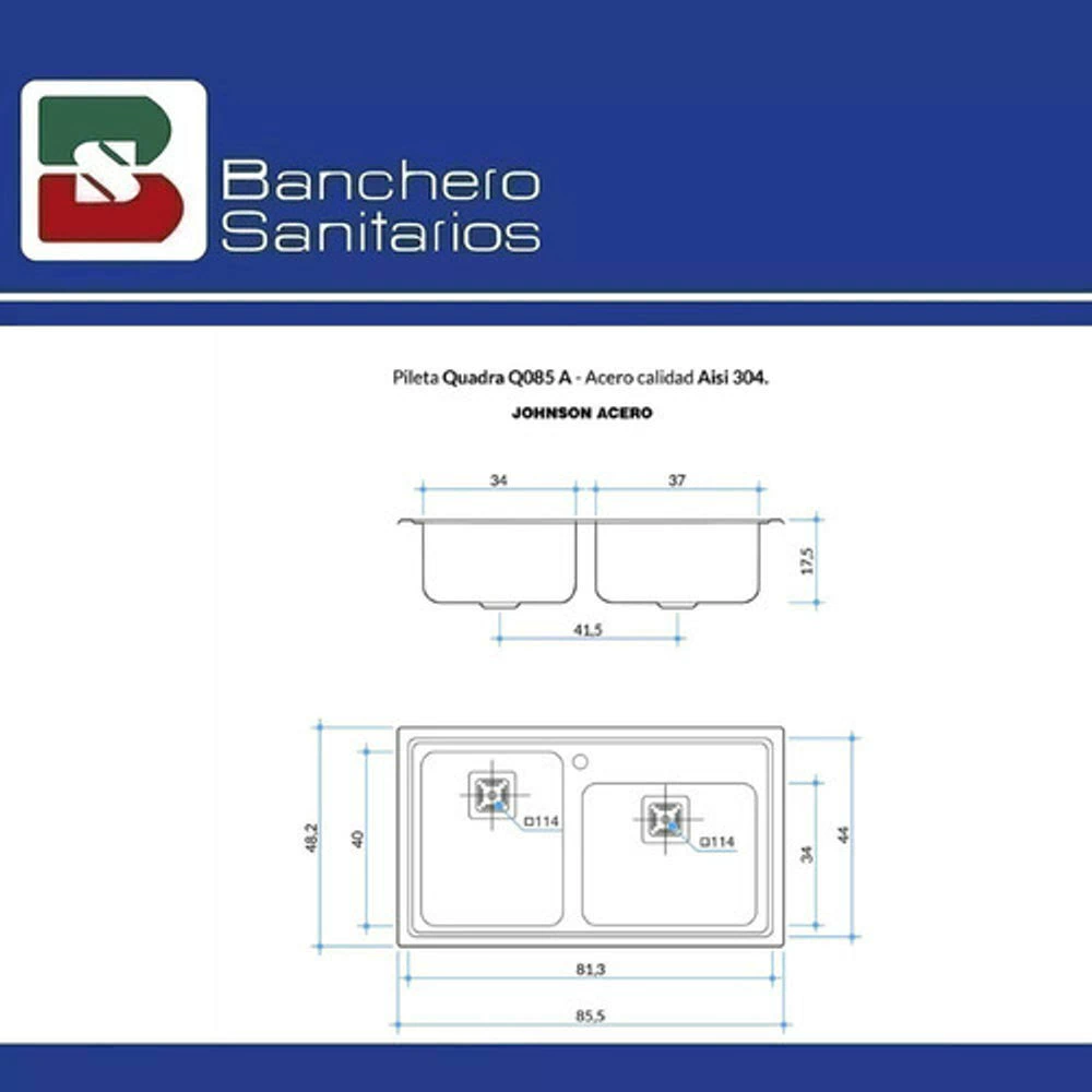 Bacha Cocina Johnson Quadra Q085Ad 85.5 X 48.2 X 17.5 (Cod:Q 085 Ad) (mod: Q085AD)