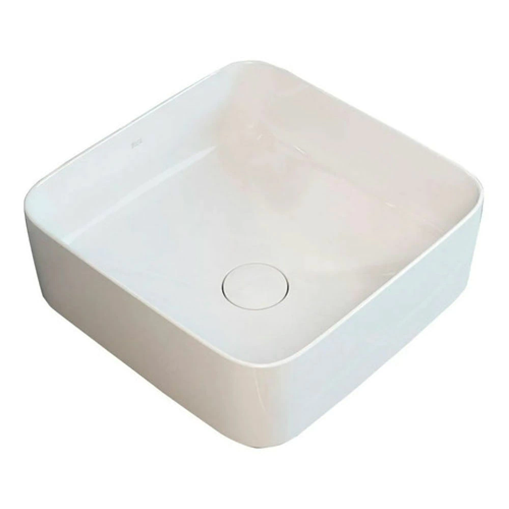Bacha sobre encimera " Semi encastrable " para lavatorio, de Fineceramic blanco, 37x37x12 Cm, marca Roca de la colección Inspira.