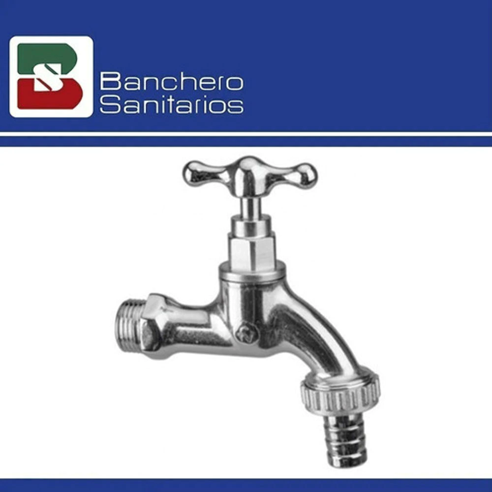 Canilla color cromo para manguera, aprobada y reforzada de 13 mm FV con volante “T" fijo. Destacada por su durabilidad y fácil limpieza.
