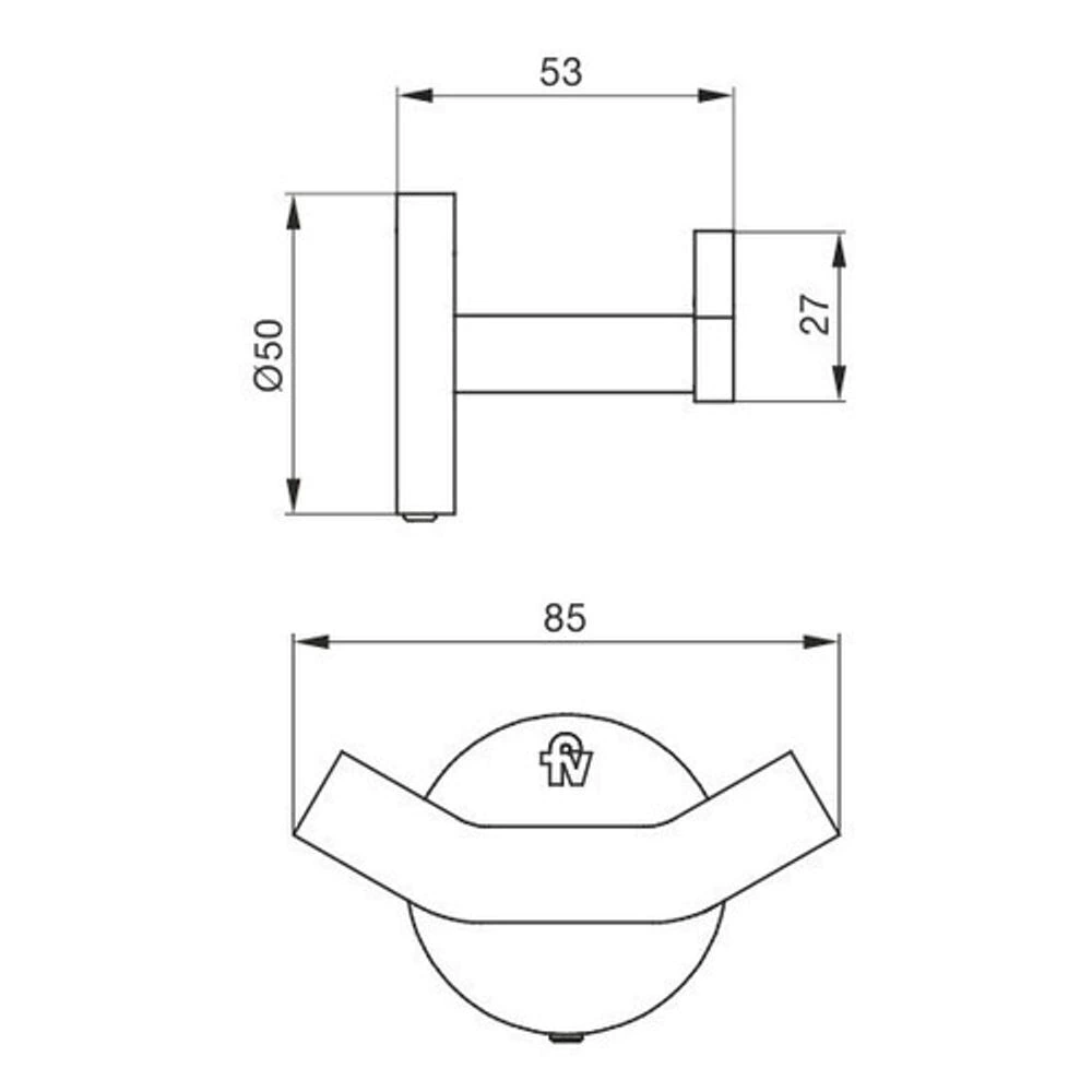 Percha doble para baño marca FV de la colección Triades destacada por su diseño moderno, su durabilidad y su fácil limpieza.