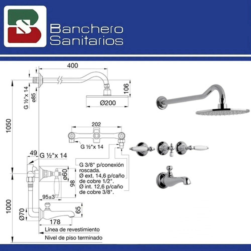 Grifería Convencional Fv Vermont Lever Bañera C/T (Cod:0103/83L-Ccb) (mod: 103/83L)