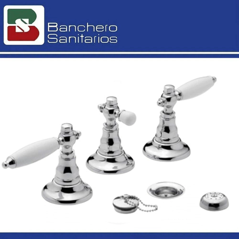 Juego para bidet, de dos llaves y transferencia marca FV de la colección Vermont Lever. Desagüe con tapita, diseño romántico, durabilidad y fácil limpieza.