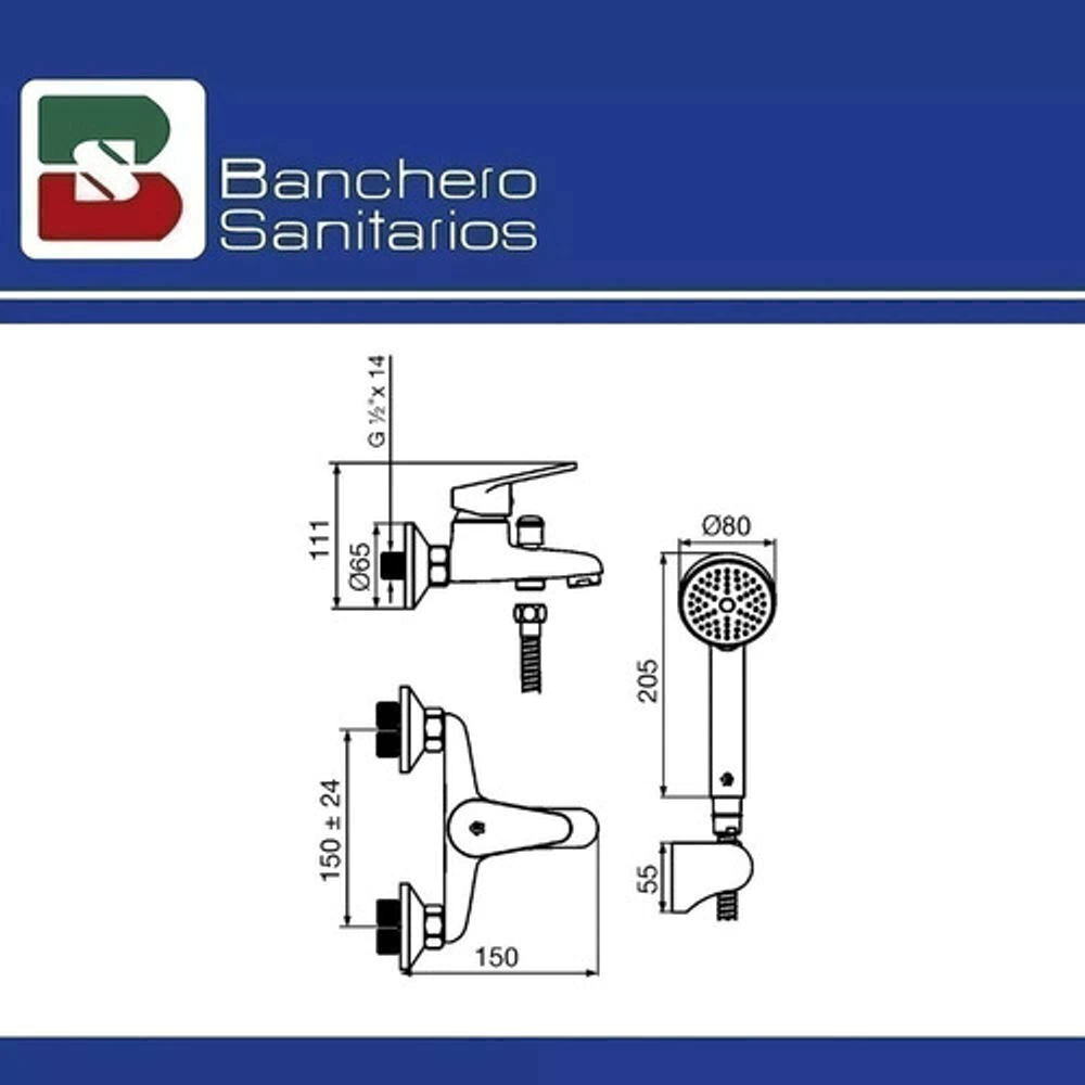 Juego monocomando exterior pared, para bañera y ducha, con transferencia automática y ducha manual autolimpiante incluída.