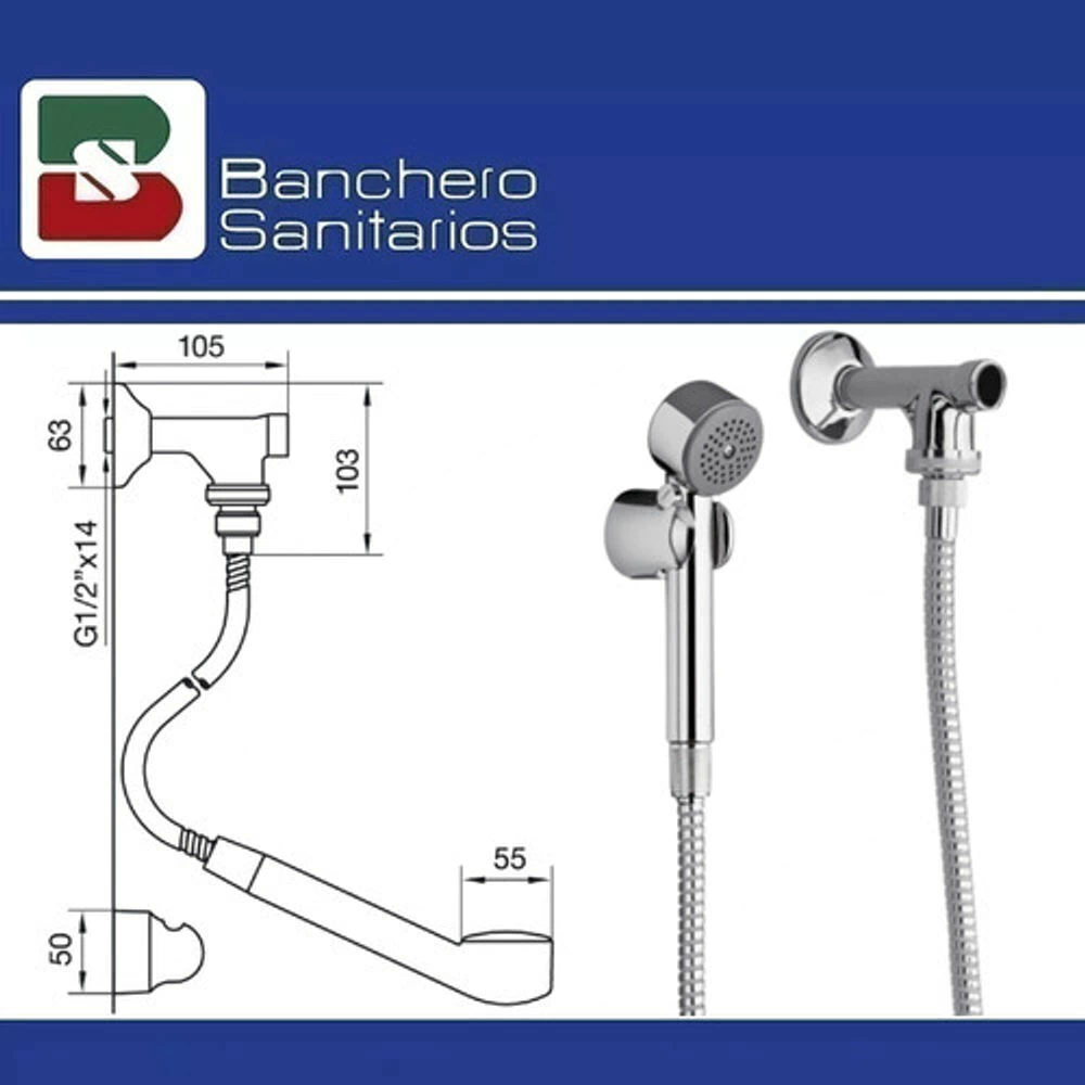 Ducha manual, con válvula y transferencia, sin ducha. Manguera de 1,75 mts, color cromo, durabilidad y fácil limpieza. Marca FV línea Duchamatic.