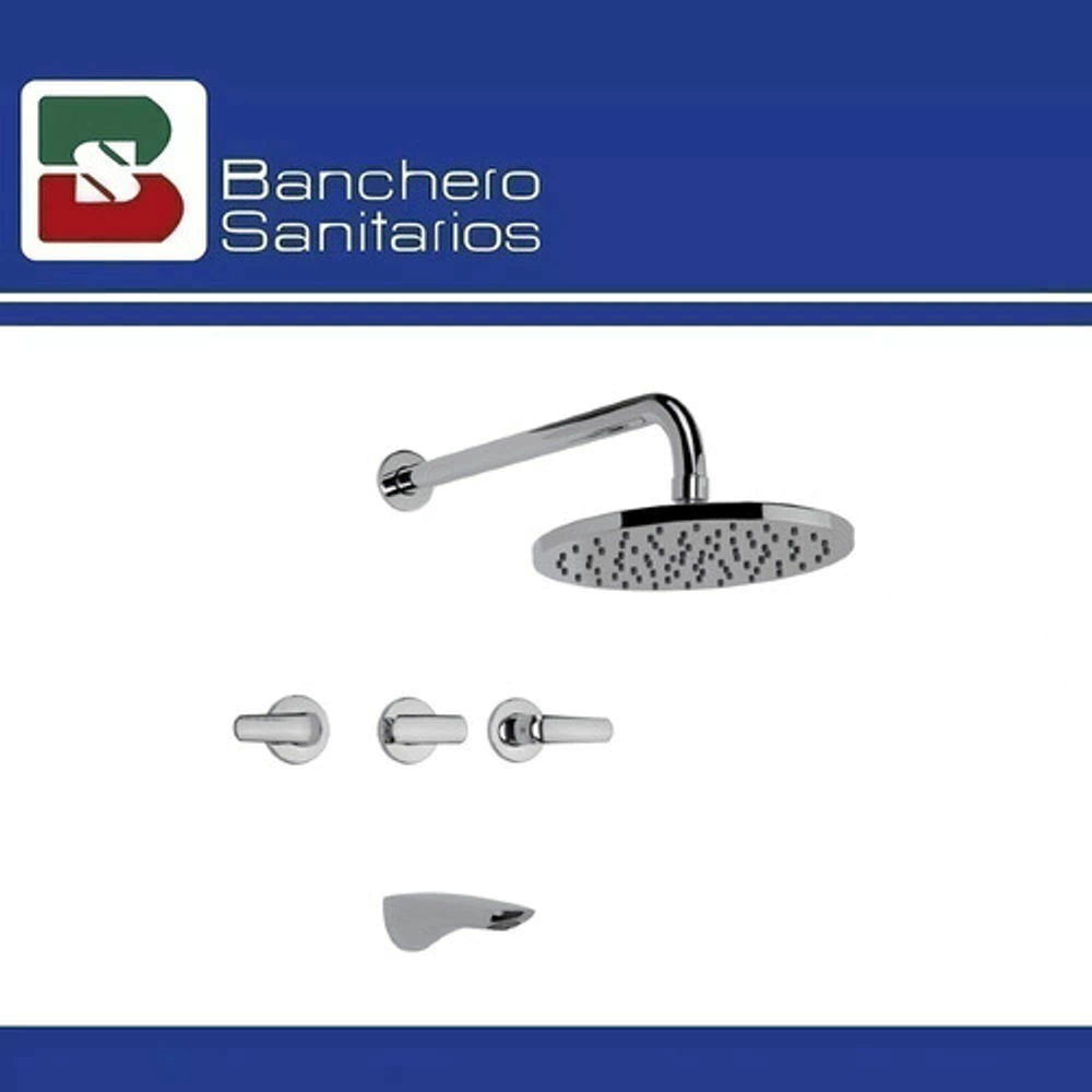 Juego color cromo para bañera y ducha, de dos llaves y transferencia, con ducha con función anticalcárea. Marca FV de la colección Epuyén, destacada por su diseño minimalista, su durabilidad y su fácil limpieza.