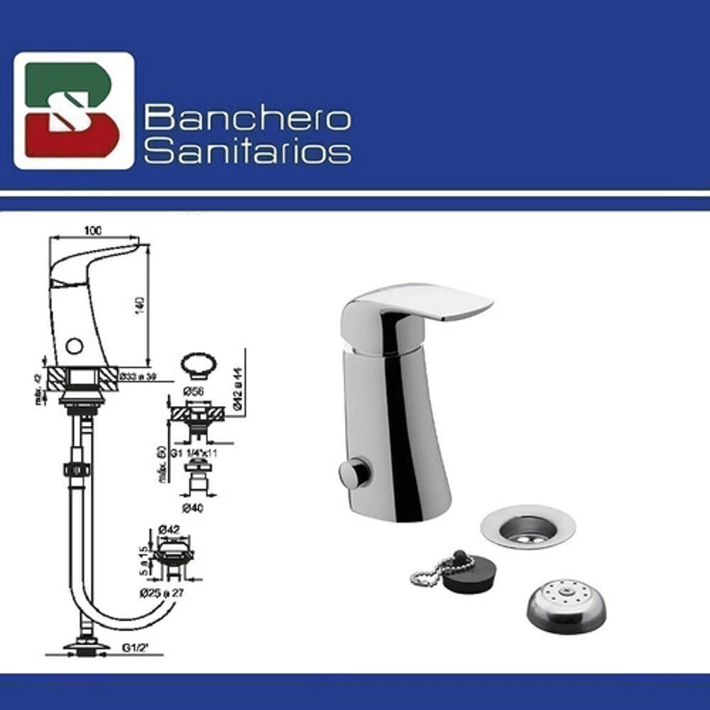 Juego monocomando para lavatorio color cromo con desagüe con tapita, marca FV de la colección Epuyén. Destacado por su diseño moderno, su durabilidad y su fácil limpieza.