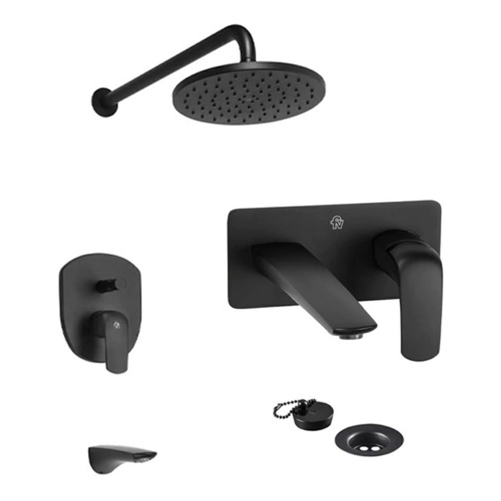 Moderna grifería monocomando empotrable con transferencia color cromo negro mate FV de la colección Epuyén. Destacado por su diseño moderno, su durabilidad, su función anticalcárea y su fácil limpieza.