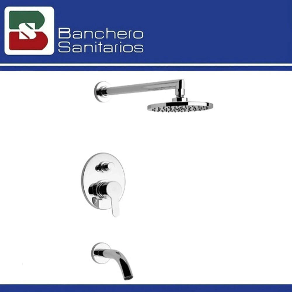 Juego monocomando color cromo para bañera y ducha con función anticalcárea. Marca FV de la colección Puelo, destacada por su diseño minimalista, su durabilidad y su fácil limpieza.