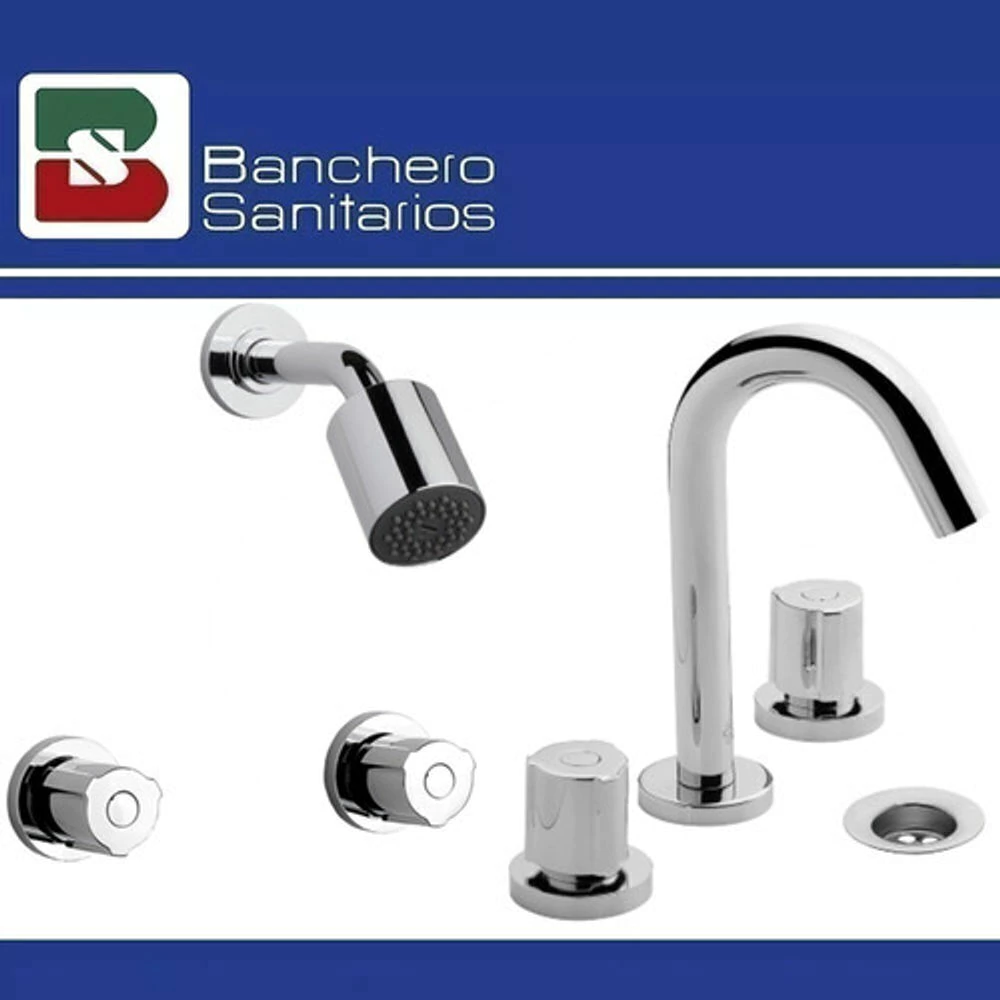 Juego para lavatorio color cromo con desagüe incluído. Marca FV de la colección Radal, destacada por su durabilidad y fácil limpieza.
