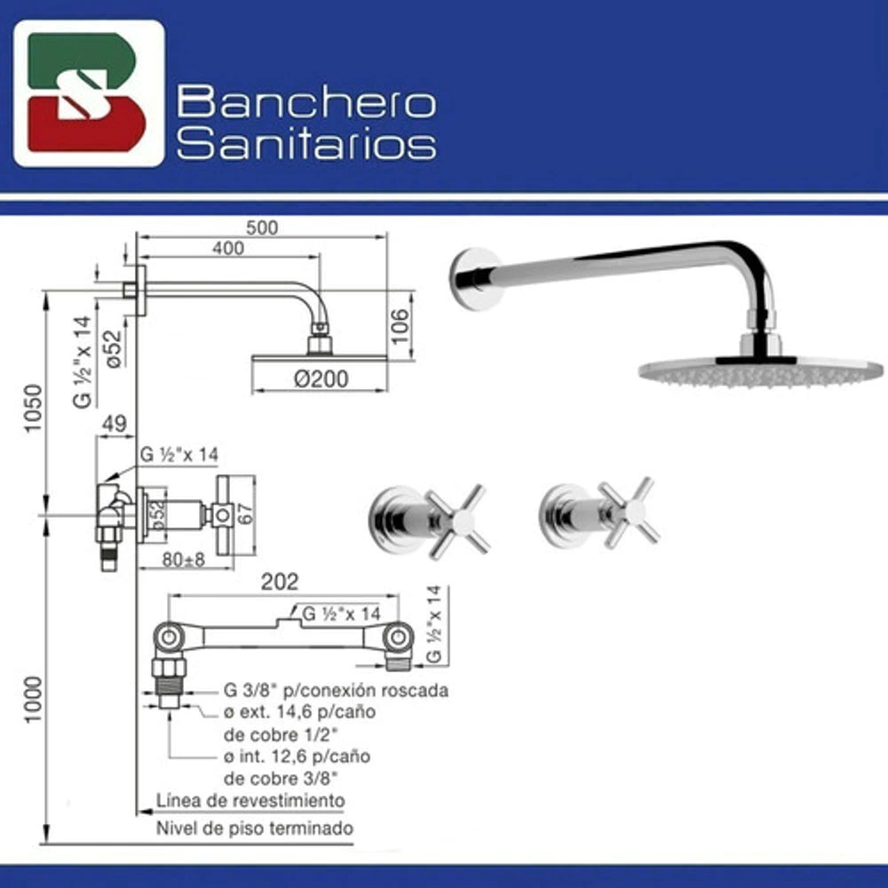 Juego para ducha, de dos llaves, con ducha con función anticalcárea, color cromo. Marca FV de la colección Temple, destacada por su diseño retro, su durabilidad y su fácil limpieza.