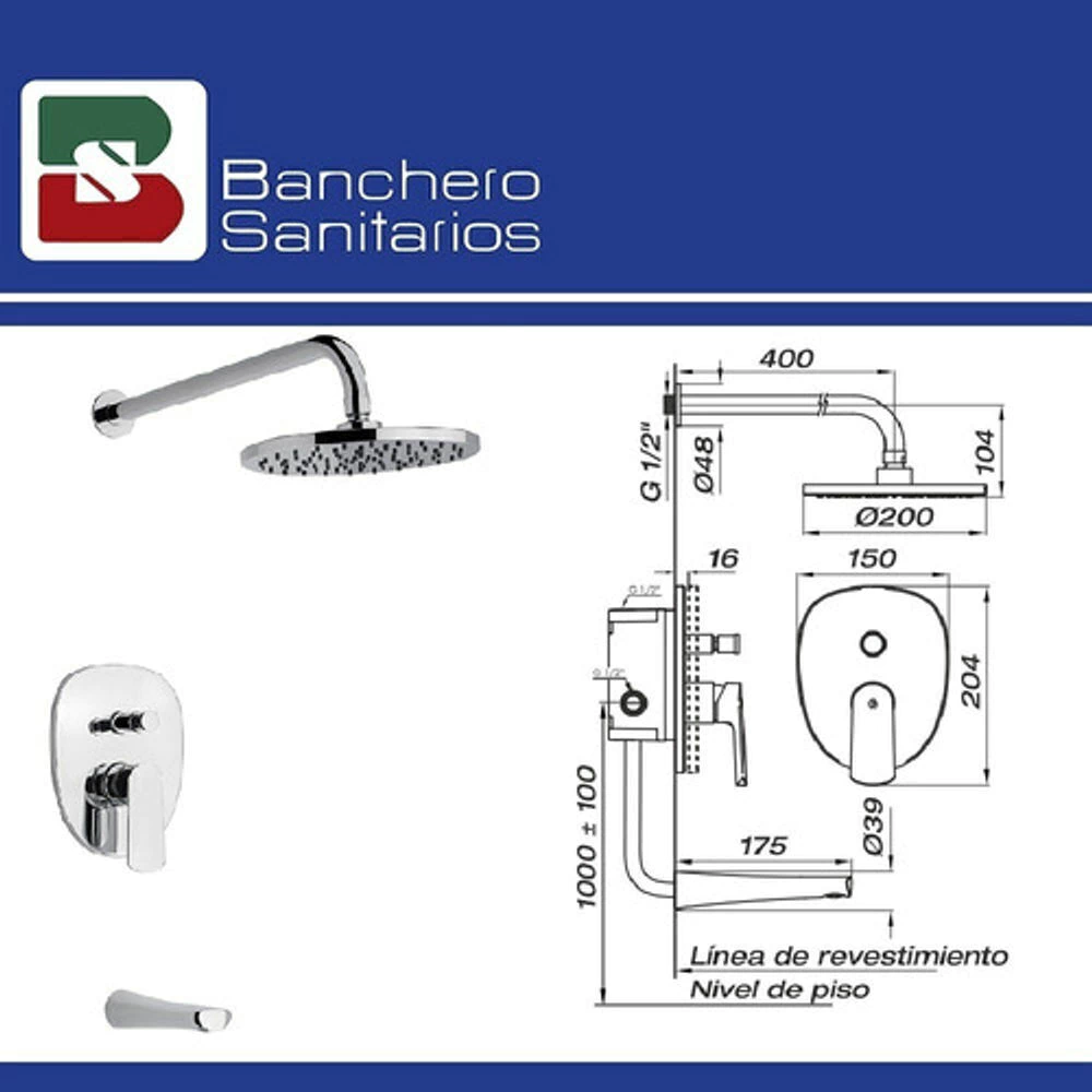 Juego monocomando color cromo para bañera y ducha con función anticalcárea, marca FV de la colección Aromo, destacado por durabilidad, cierre suave y fácil limpieza.