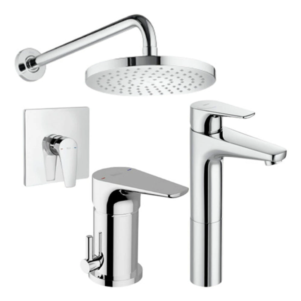 Combo griferia Roca Atlas lavat Alto+Ducha Emb S/T+Bidet tra