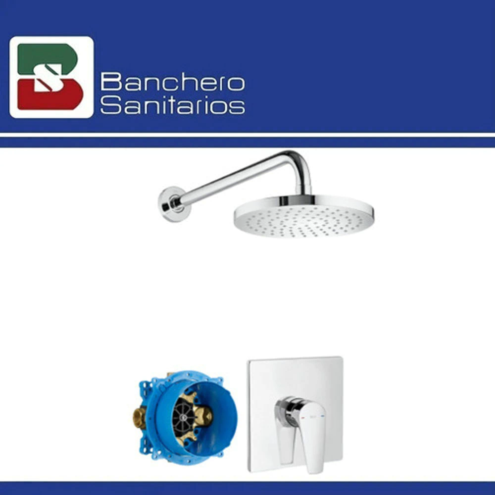 Kit empotrable para ducha, con brazo de ducha 400 mm, rociador RainSense Ø200 mm y RocaBox, sin transferencia. Marca Roca de la colección Atlas.