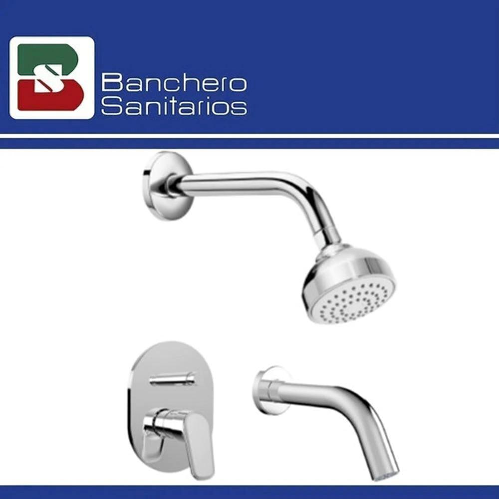 Kit empotrable para ducha con transferencia, con brazo de ducha 215 mm, rociador Ø80 mm y caño de bañera. Marca Roca de la colección Coral.