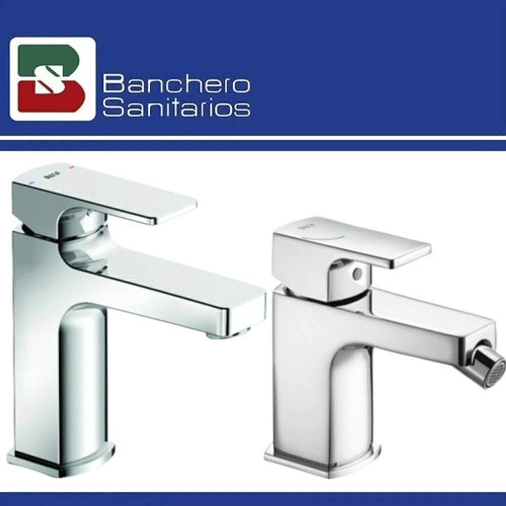 Mezclador monomando monoblock para bidé con cuerpo liso y desagüe click-clack, Cold Start, marca Roca de la colección Escuadra. Enlaces de alimentación flexibles incluídos.