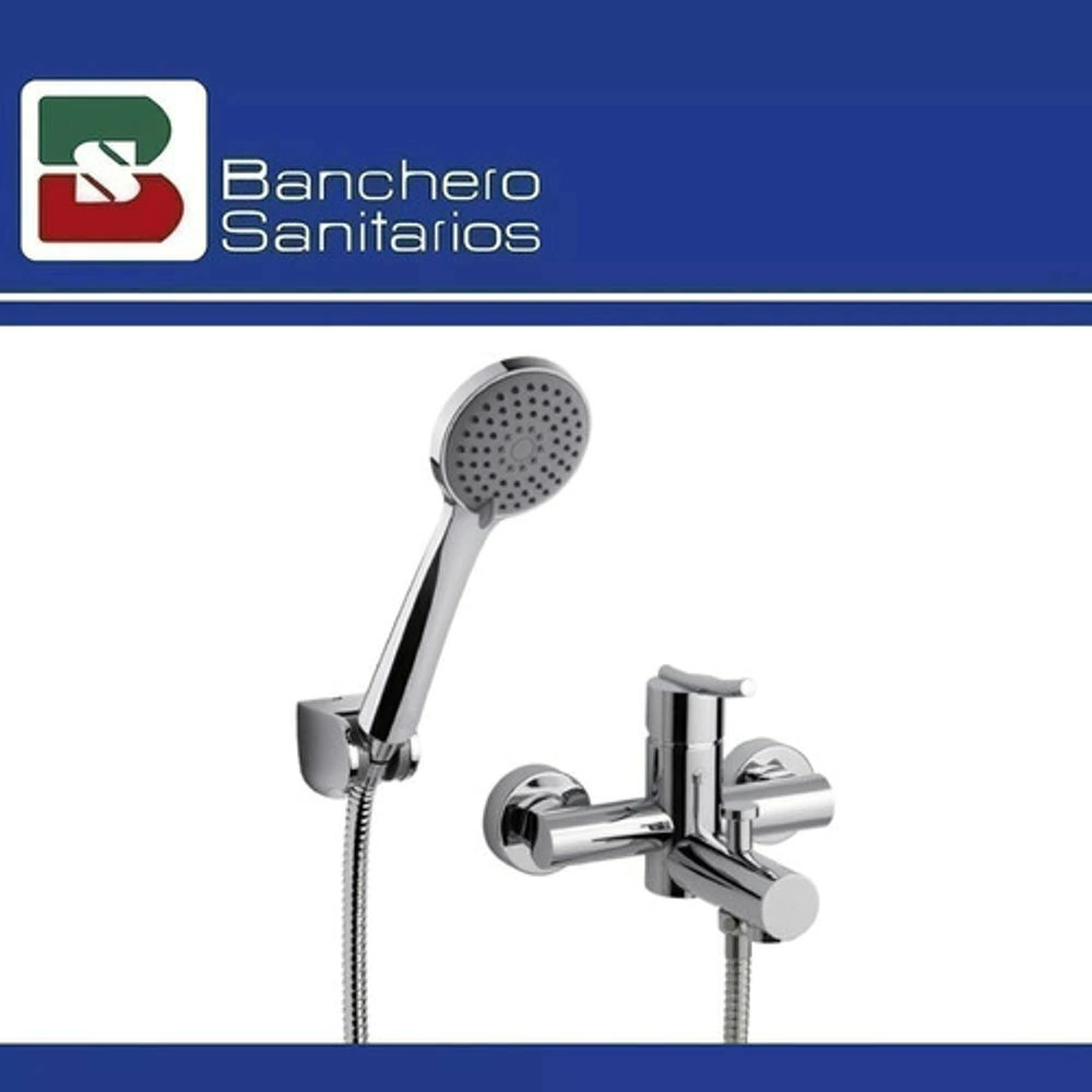 Juego monocomando exterior pared, para bañera y ducha, con transferencia automática y ducha manual autolimpiante incluida marca FV de la colección Libby. Destacada por su cierre suave, su durabilidad, su función anticalcárea y su fácil limpieza.