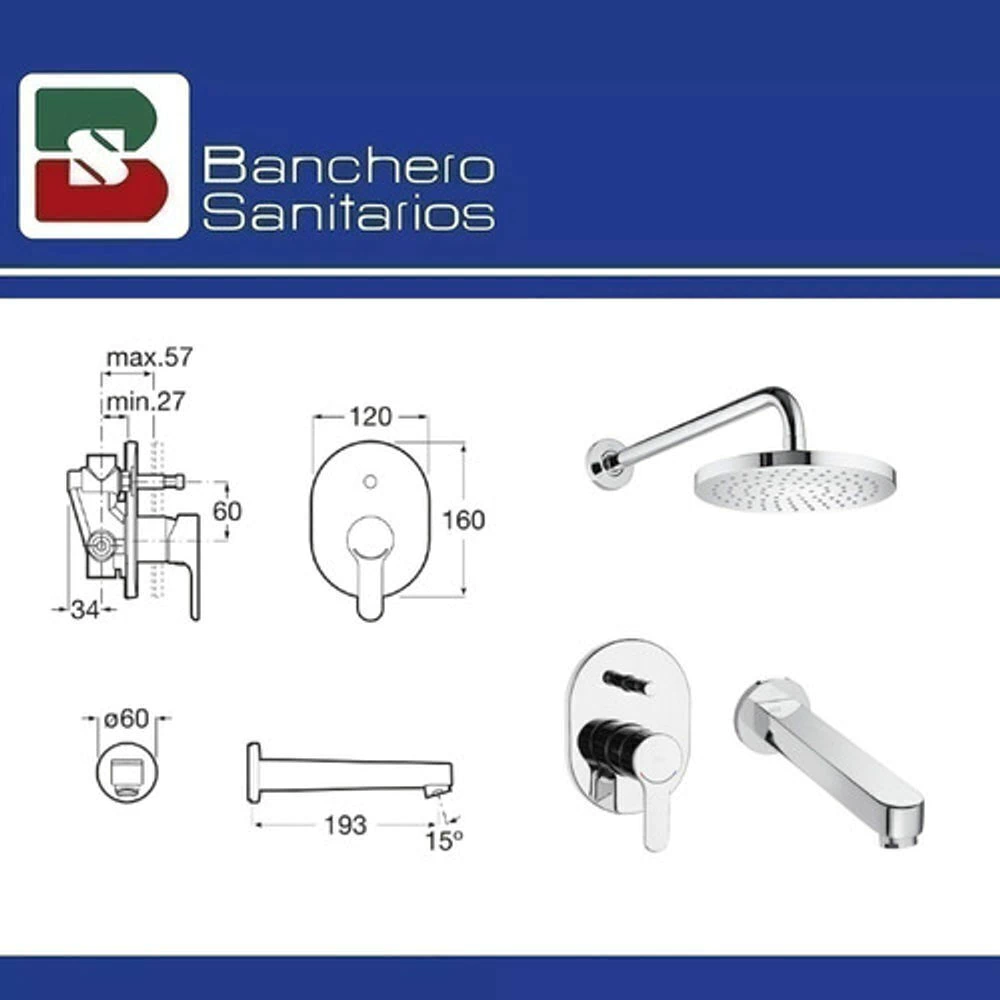 Kit empotrable para ducha con transferencia, con brazo de ducha 400 mm, rociador RainSense Ø200 mm y caño de bañera, línea L20.