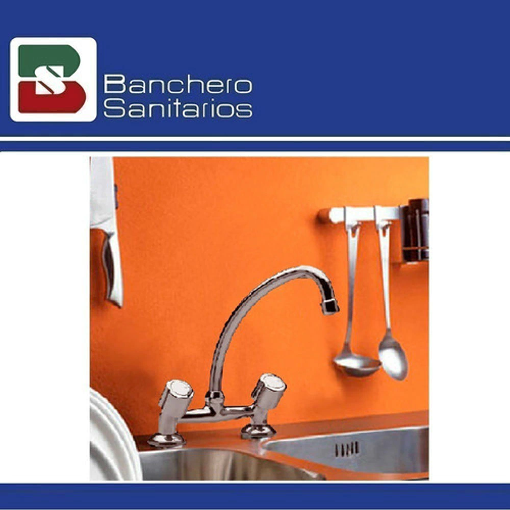 Juego para mesada de cocina, con pico móvil alto, dos llaves, color cromo, marca FV de la colección Allegro, destacada por su durabilidad y fácil limpieza.