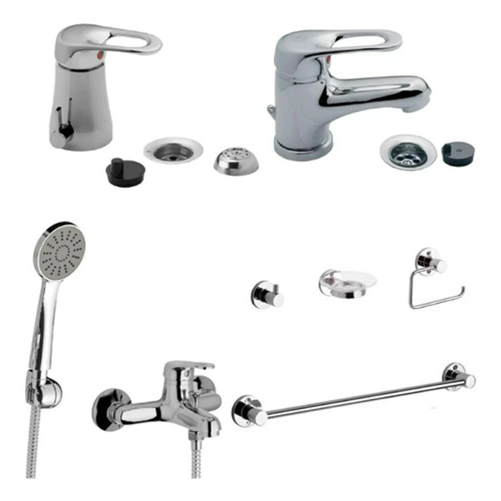 Kit de accesorios de baño 4 piezas color cromo marca FV de la colección Arizona destacados por su durabilidad y fácil limpieza.
