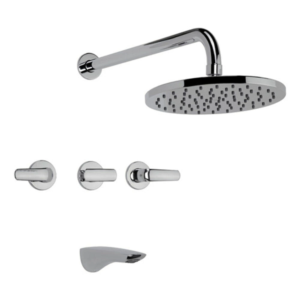 Juego color cromo para bañera y ducha, de dos llaves y transferencia, con ducha con función anticalcárea. Marca FV de la colección Epuyén, destacada por su diseño minimalista, su durabilidad y su fácil limpieza.