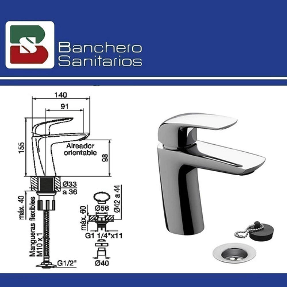 Juego monocomando para lavatorio color cromo con desagüe con tapita, marca FV de la colección Epuyén. Destacado por su diseño moderno, su durabilidad y su fácil limpieza.