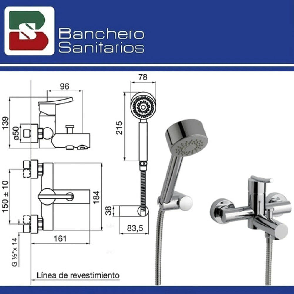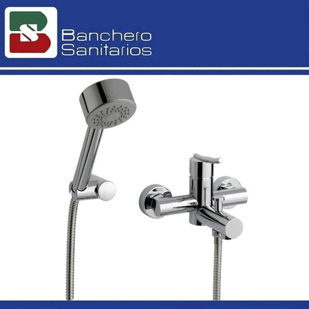 Juego monocomando exterior pared, para bañera y ducha, con transferencia automática y ducha manual autolimpiante incluida marca FV de la colección Libby. Destacada por su cierre suave, su durabilidad, su función anticalcárea y su fácil limpieza.