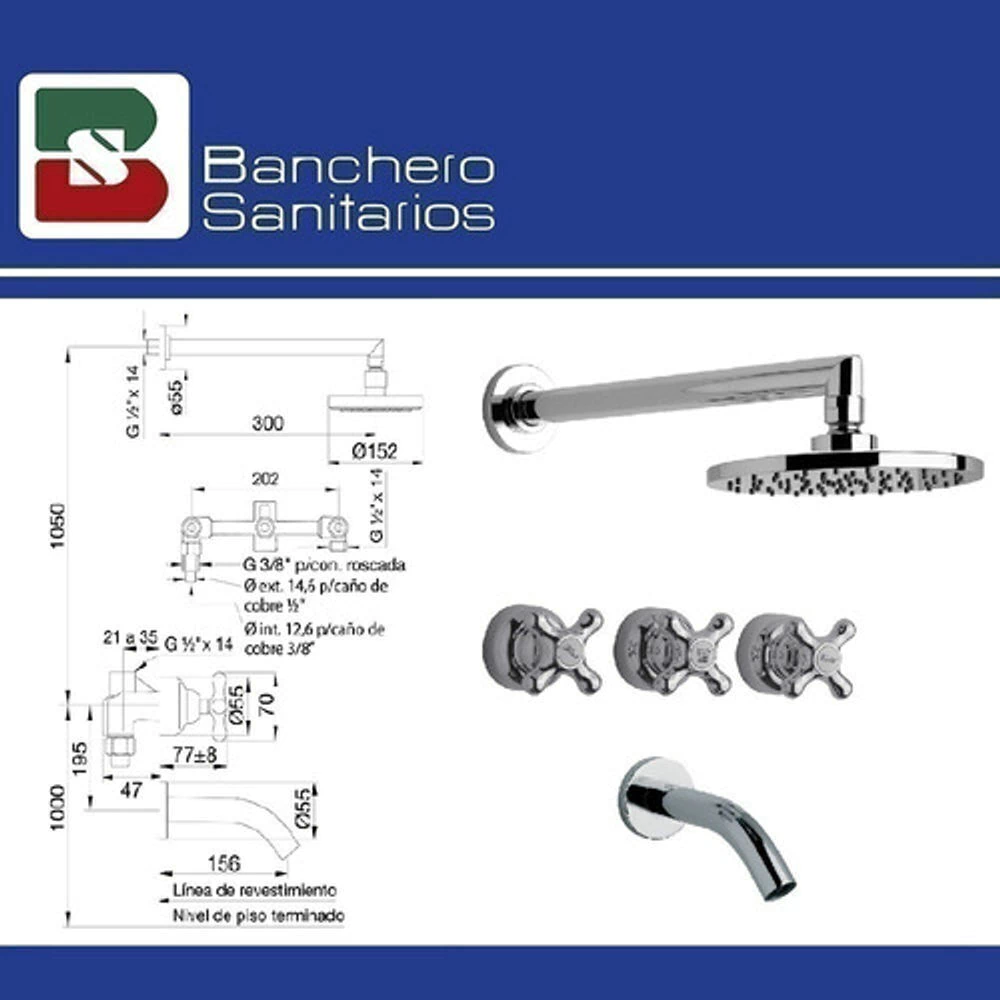 Juego para bañera y ducha, de dos llaves y transferencia, con ducha, color cromo. Marca FV de la colección Malena, destacada por su durabilidad y fácil limpieza.
