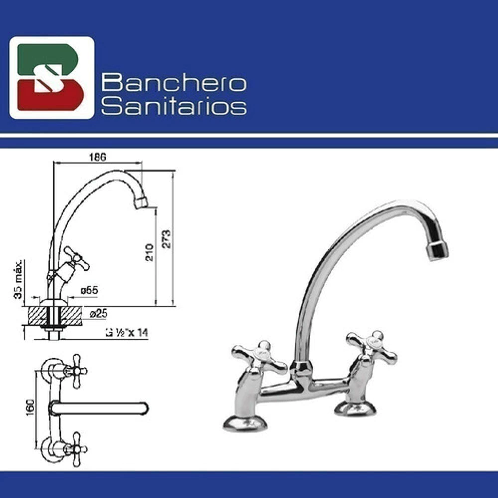 Juego para mesada de cocina, con pico móvil alto. Marca FV de la colección Malena, destacada porsu durabilidad y fácil limpieza.