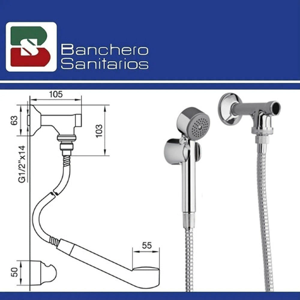 Ducha manual, con válvula y transferencia, sin ducha. Manguera de 1,75 mts, color cromo, durabilidad y fácil limpieza. Marca FV línea Duchamatic.