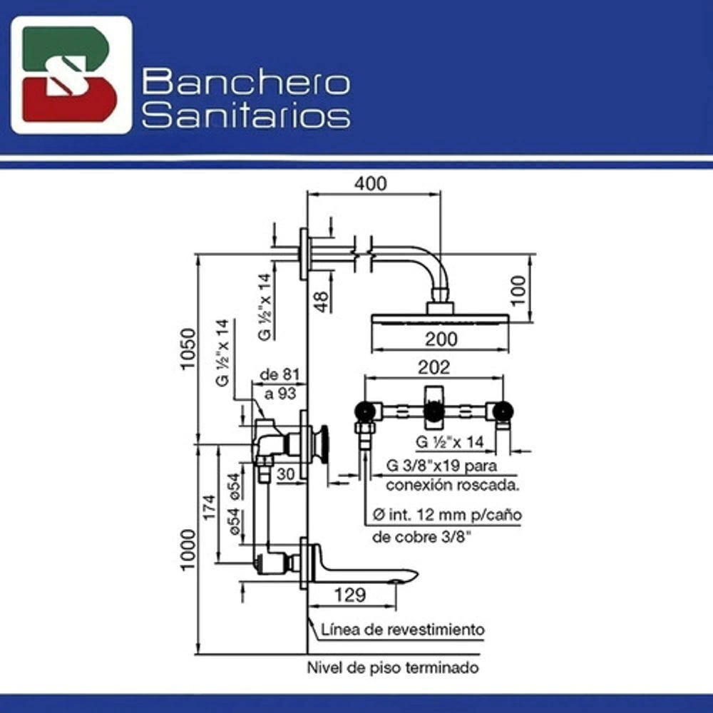 Juego para bañera y ducha, de dos llaves y transferencia, con ducha.