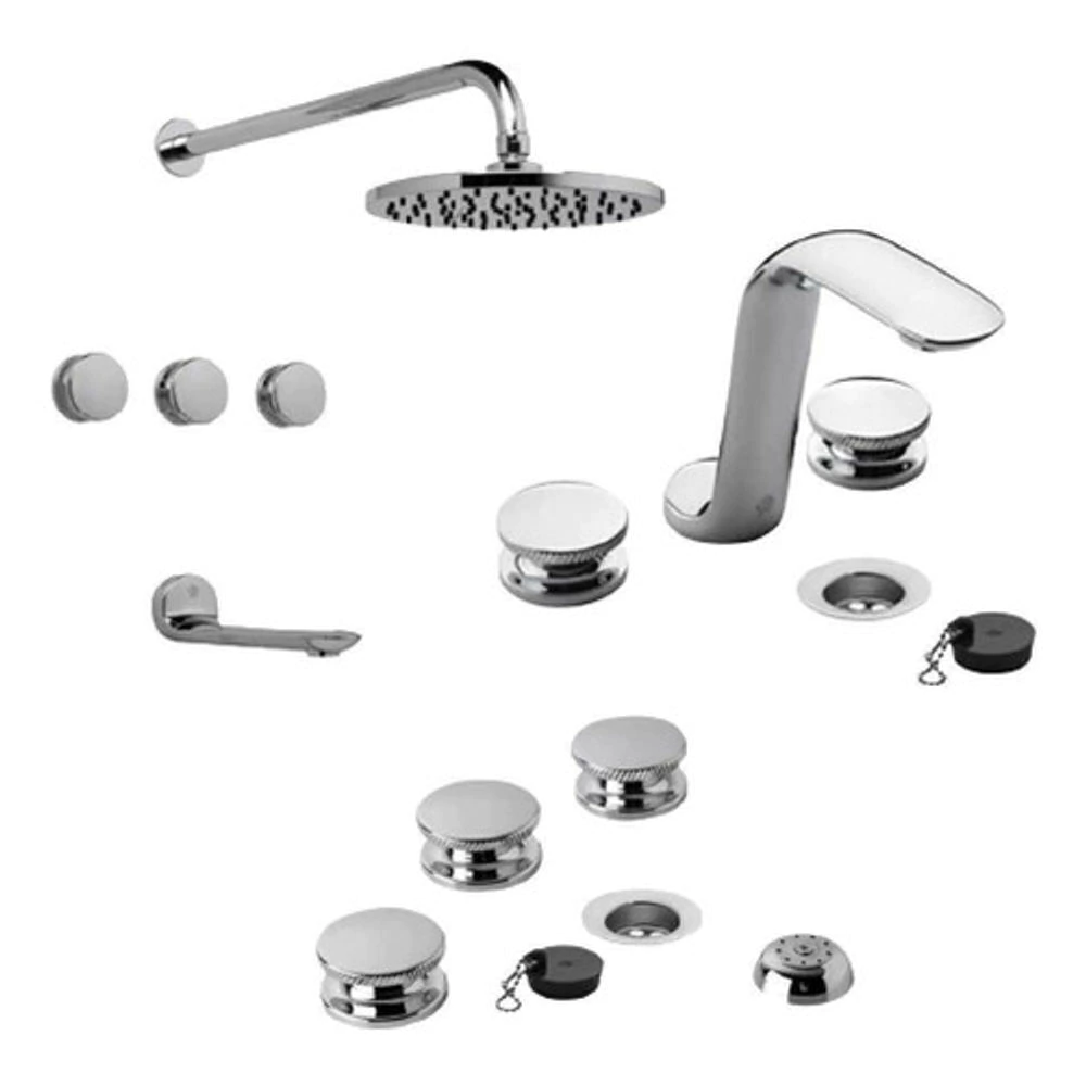 Juego para bidé, de dos llaves y transferencia. Desagüe con tapita.
