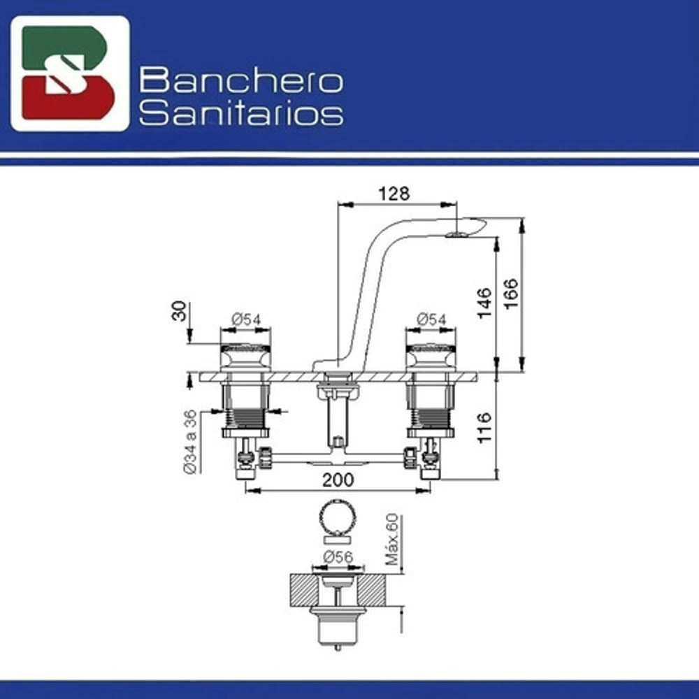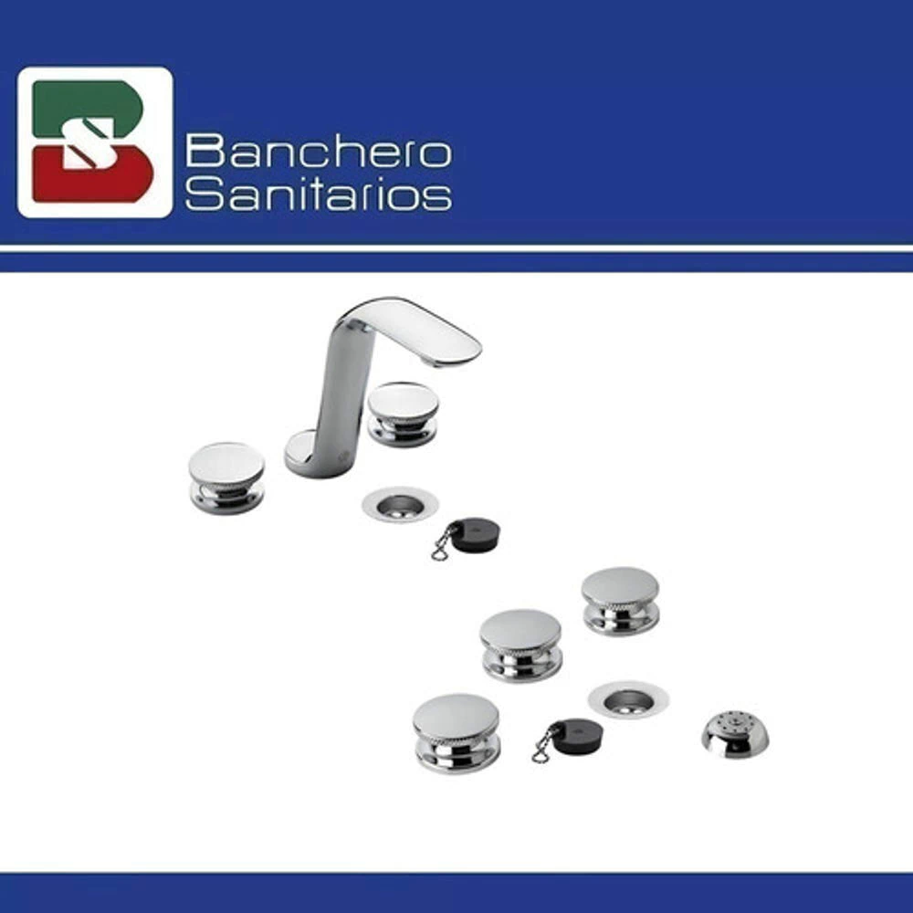 Juego para bidé, de dos llaves y transferencia. Desagüe con tapita.