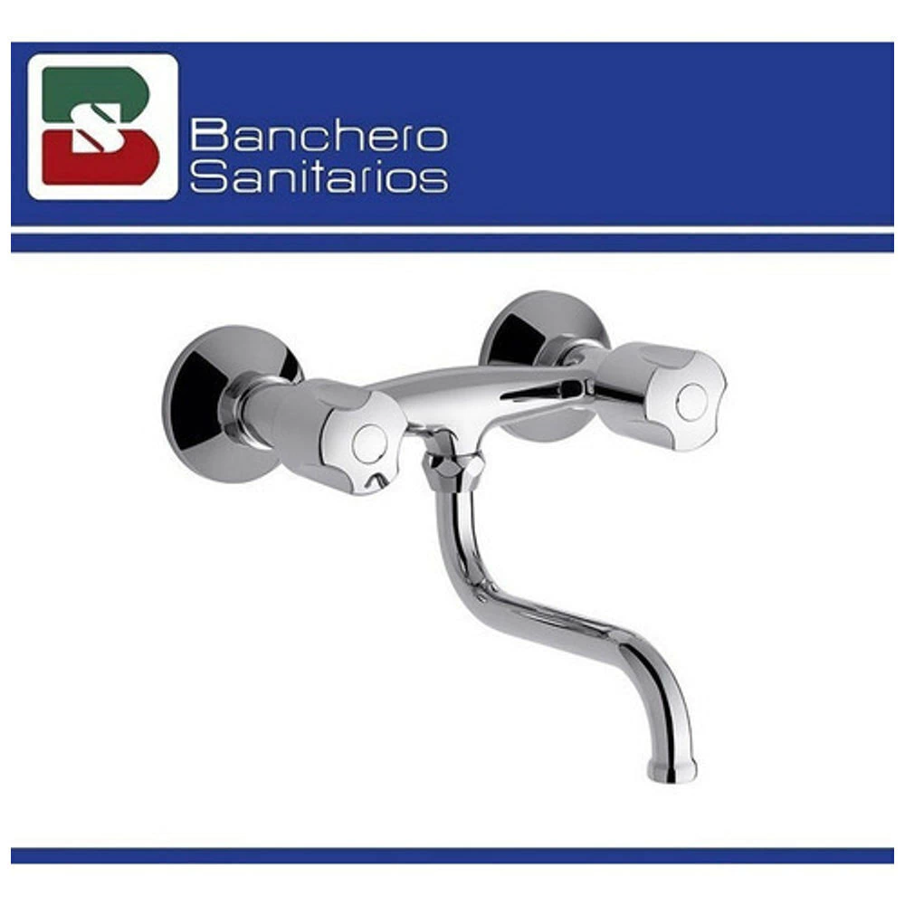 Juego para cocina exterior de pared, con pico móvil bajo, dos llaves, color cromo, marca FV de la colección Pampa, destacada por su durabilidad y fácil limpieza. Conexiones excéntricas.