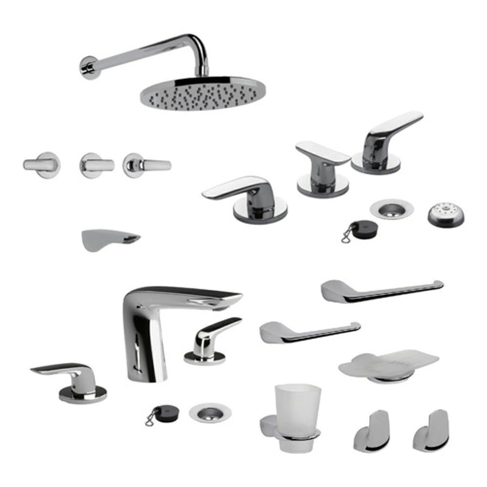 Juego para lavatorio color cromo con desagüe con tapita. Marca FV de la colección Epuyén, destacada por su diseño minimalista, su durabilidad y su fácil limpieza.