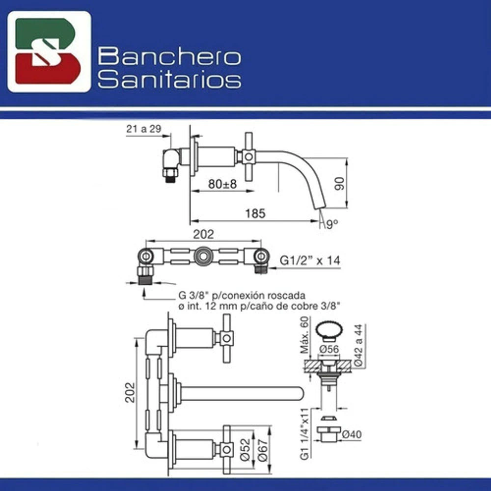 Griferia Fv Temple de Lavatorio Pared 203/87