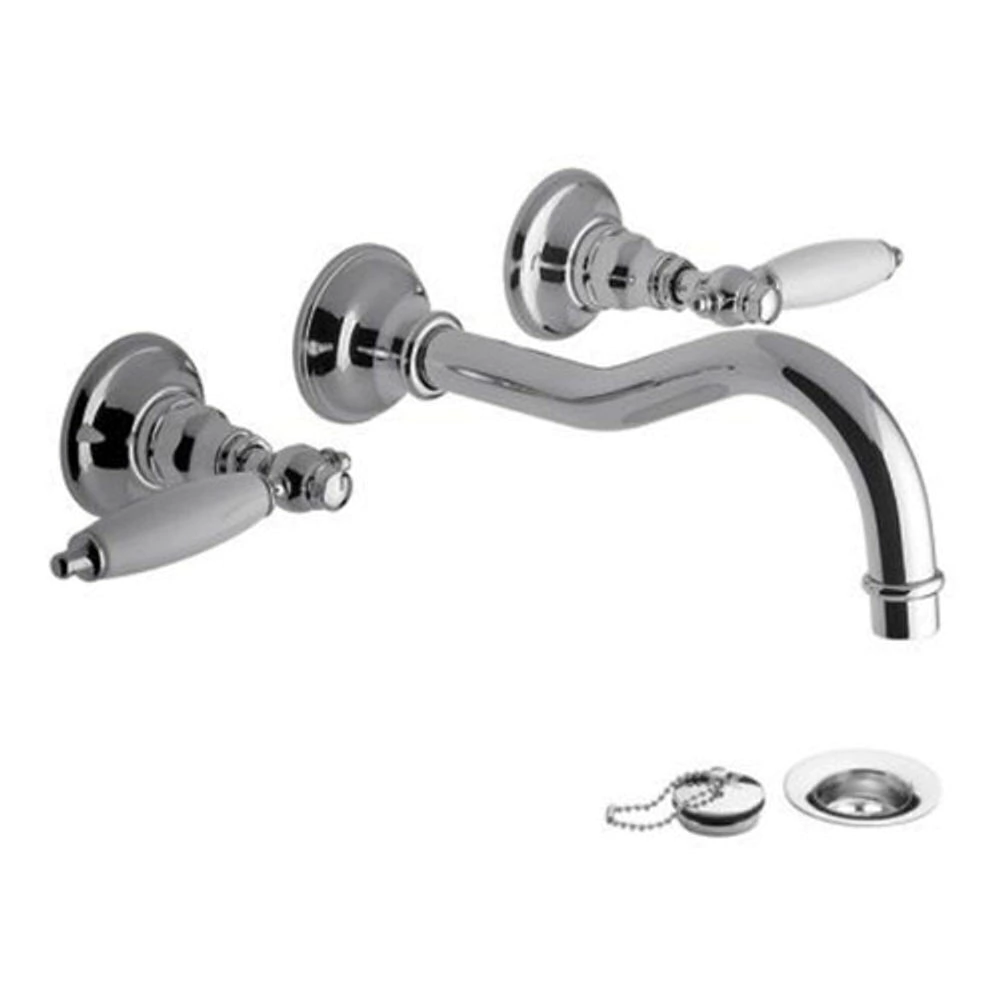Juego para lavatorio de pared marca FV de la colección Vermont Lever. Desagüe con tapita, color cromo, cierre suave, durabilidad y fácil limpieza.