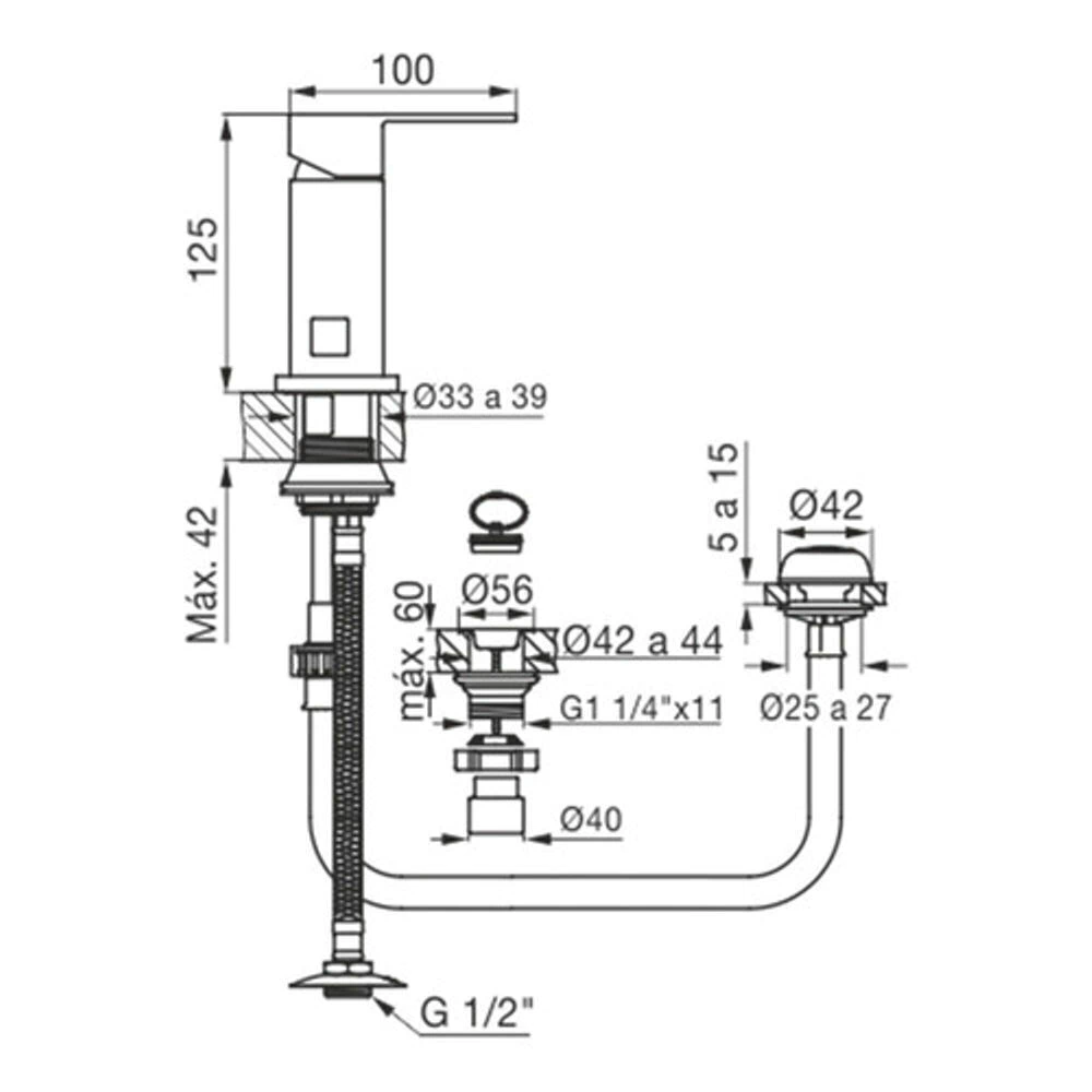 Juego monocomando para bidet color cromo con desagüe con tapita. Marca FV de la colección Dominic New. Destacado por su cierre suave, Durabilidad y Fácil limpieza