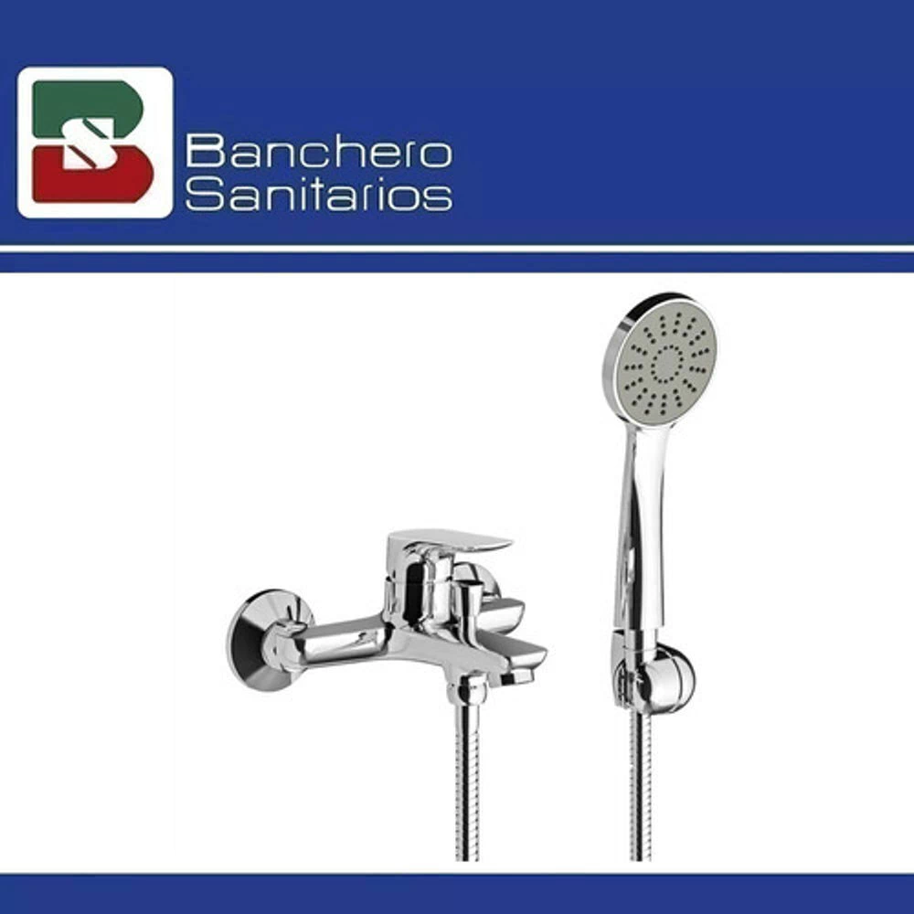 Juego monocomando exterior pared, para bañera y ducha, con transferencia automática y ducha manual autolimpiante incluída.