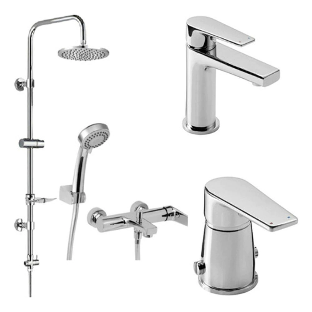 Grifería Piazza Next Lavatorio, Bidet y Ducha Ext + Barral De Ducha Redonda