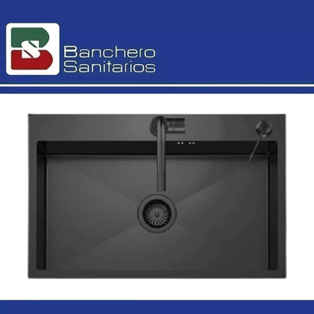 Pileta Simple Mi Pileta Etna 718E Black Negra 65X35 + Grifería Monocomando Fv Aromo Negro 411.04/D8 Cocina