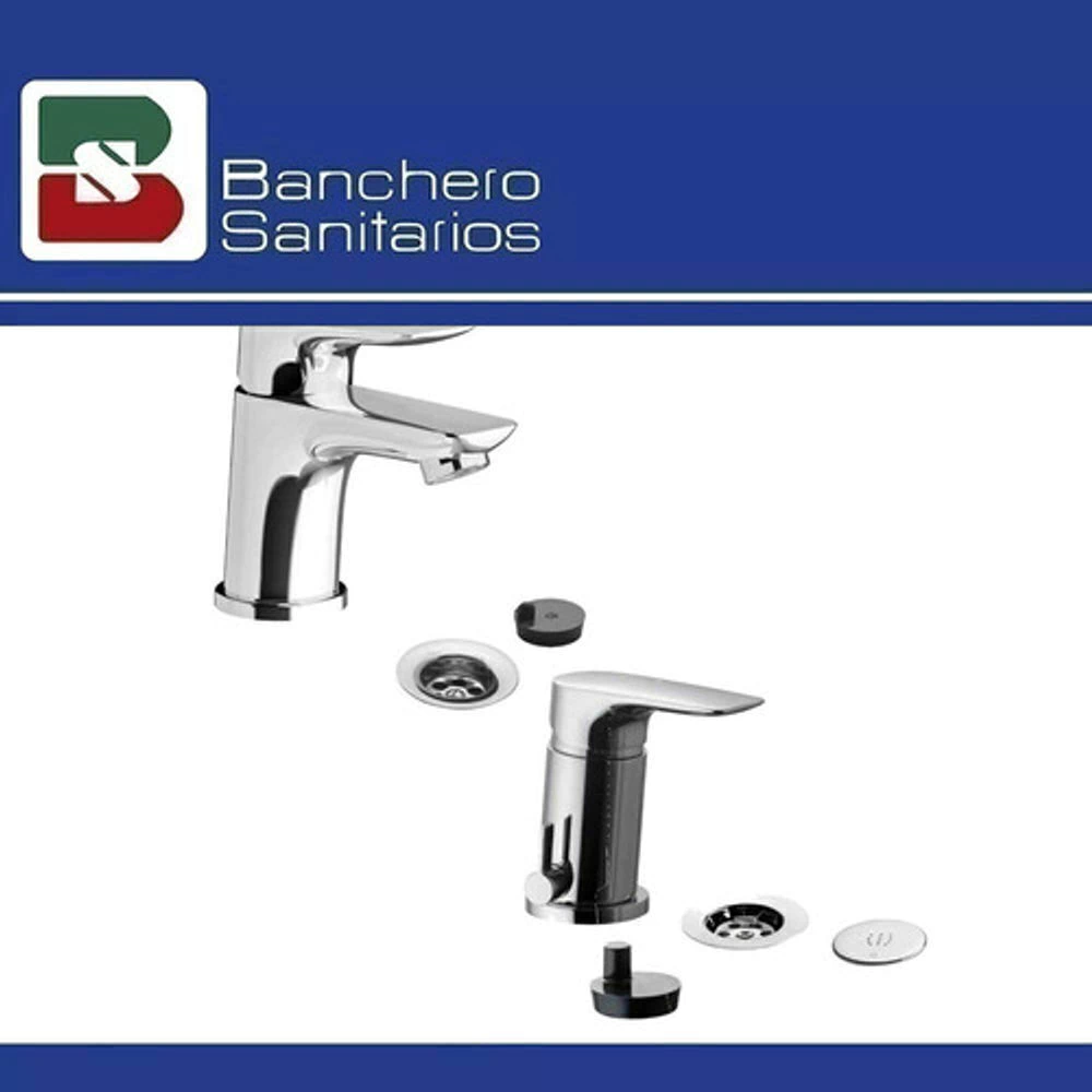 Juego monocomando para lavatorio. Desagüe con tapita.