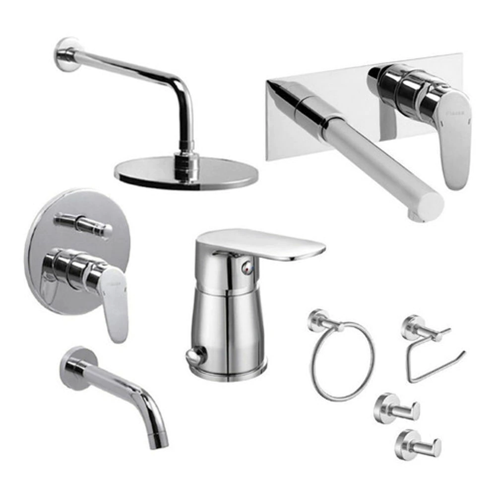 Descarga, Lluvia de Bidet y Conjunto de Fijaciones y flexibles G1/2"x14h de Nylon.